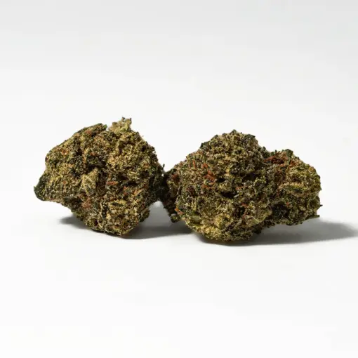 Grease Monkey is an indica dominant hybrid strain created through crossing the classic Gorilla Glue #4 with the delicious Cookies & Cream strain. This potent bud brings on the powerful effects and highly addictive flavor, flawlessly fusing those of its parent strains. With each rich inhale comes flavors of nutty vanilla and sweet skunky diesel. The aroma is just as delicious with an earthy pungency accented by sugary skunky diesel and a touch of vanilla. The Grease Monkey high is a creeper, building up behind the eyes before suddenly taking hold. You’ll suddenly feel a slam to the head of euphoric relaxation that lulls you into a mental state of calm and haze. This effect will quickly become sleepy, easing both mind and body into a completely sedated state that’s calming and relaxing. Thanks to these effects and its super high 24-25% average THC level, Grease Monkey is the perfect choice to treat conditions such as chronic pain, appetite loss or nausea, insomnia, headaches or migraines, and inflammation. This bud has fluffy tapered forest green nugs with sparse orange hairs and a coating of tiny clear crystal trichomes.